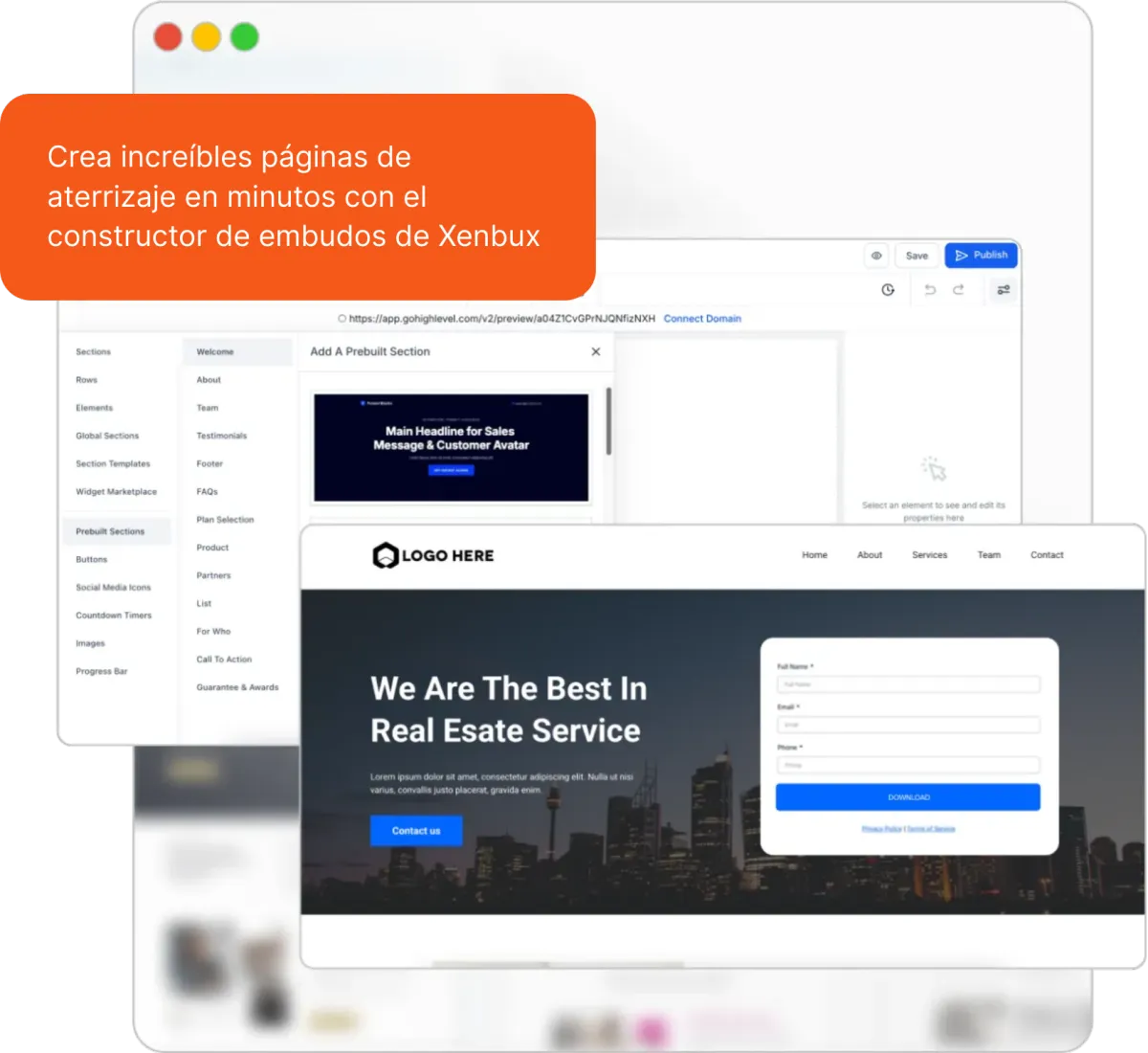 Constructor de páginas web, landing pages y embudos